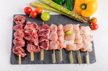 朝8時に御殿市内直営農場から出荷された鶏が解体され、生の鶏肉(1枚より販売)や串打ちし日本一新鮮”な焼き鳥”も販売しております。